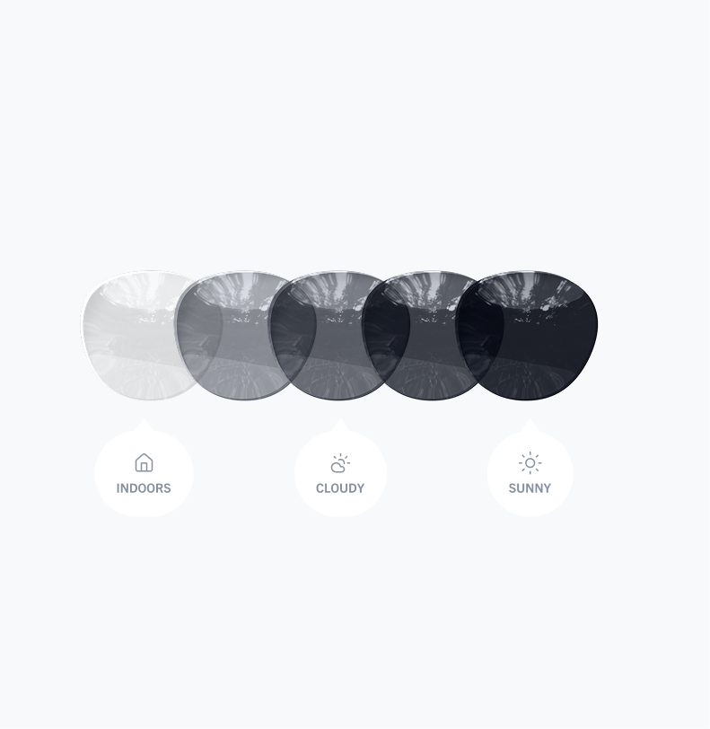 Our self-tinting lenses in the ColorMatic® family seamlessly react to changing light. Darkening outdoors and quickly returning to clear indoors, they provide vision correction, reliable UV protection, and lasting comfort throughout the day without the need to switch glasses.